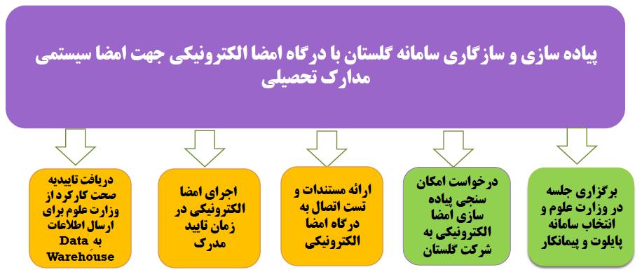 | ۲۳ | پیاده سازی و سازگاری سامانه گلستان با درگاه امضا الکترونیکی جهت امضا سیستمی مدارک تحصیلی | ۶ | --- |