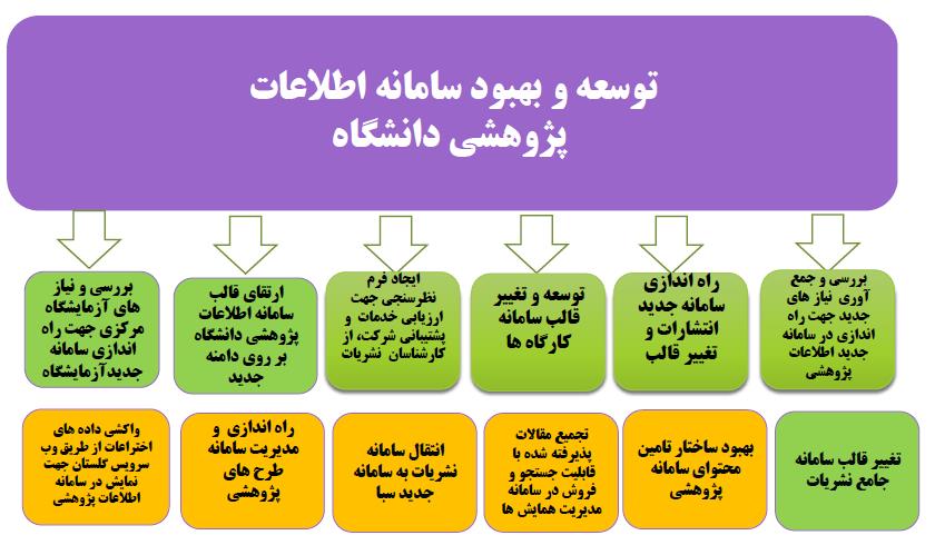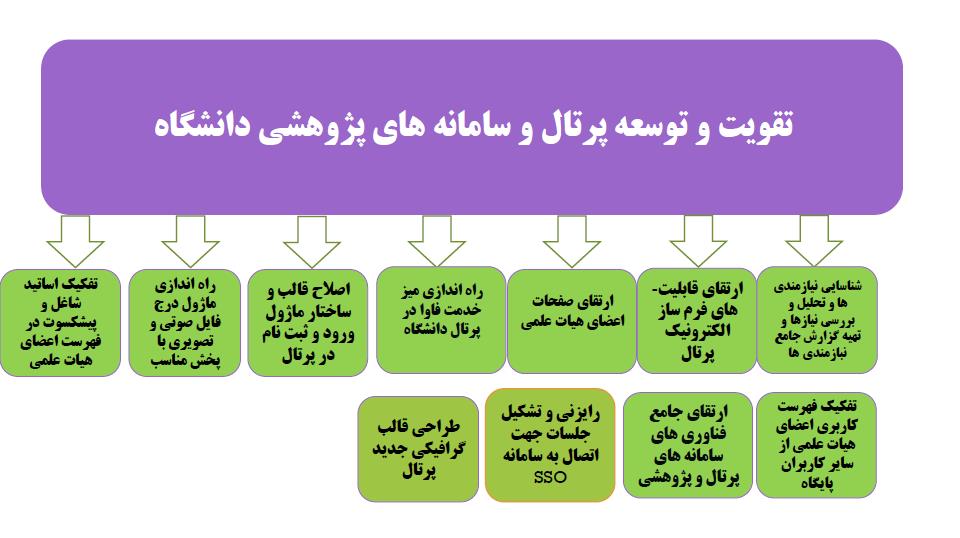 | ۱۶ | ارتقاء و پشتیبانی سرویس پرتال و سامانه پژوهشی دانشگاه | ۱۲ | ۱۵۰ |
