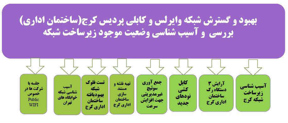 ۲-۲-۳ بهبود و گسترش شبکه وایرلس و کابلی پردیس کرج (ساختمان اداری) بررسی و آسیب شناسی وضعت موجود زیرساخت شبکه