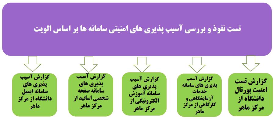 | ۱۲ | تست نفوذ و بررسی آسیب پذیری های امنیتی سامانه ها براساس اولویت | ۶ | ۱۵ |
