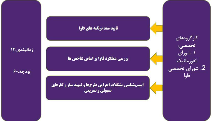 | ۹ | تدوین سند کاهش تصدی گری فاوا و تهیه مدل جدید کاری | --- | --- |