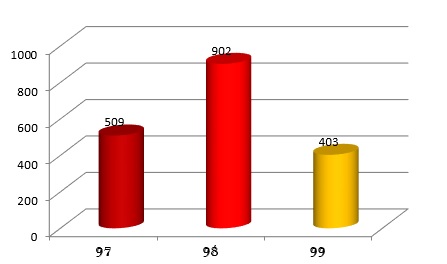 نمودار ۲. تعداد ایمیل های ایجاد شده به تفکیک سال ۹۷، ۹۸ و ۹۹