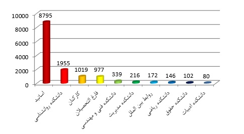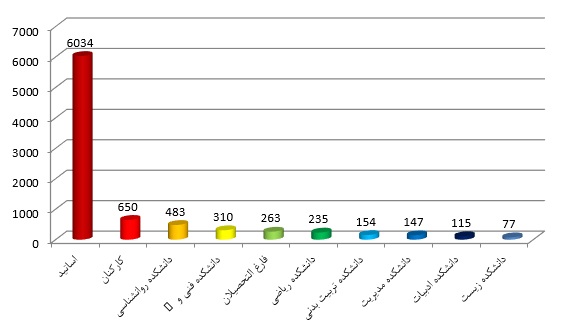 همانطور که در نمودار شماره ۳ و ۴ مشاهده می فرمایید بیشترین ارسال ایمیل از نظر سایز و تعداد به گروه اساتید تعلق دارد و در بین دانشکده ها، دانشکده علوم تربیتی و روانشناسی در صدر سایر دانشکده ها است.
