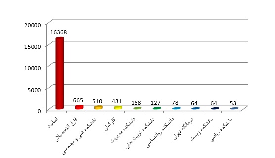 همانطور که در نمودار شماره ۵ و ۶ مشاهده می فرمایید بیشترین دریافت ایمیل از نظر سایز و تعداد به گروه اساتید تعلق دارد و در بین دانشکده ها، دانشکده فنی و مهندسی در صدر سایر دانشکده ها است.
