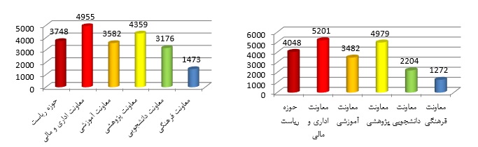با توجه به مکانیزه سازی مکاتبات و به روزرسانی سامانه و تهیه patch های مورد نیاز موجب گردیده تا بصورت گستره استفاده از این سامانه افزایش یافته و باعث کاهش مشکلات استفاده از روش دستی مکاتبات اداری گردد. در زیر لیست ارسال و دریافت مربوط به سال ۹۸ و ۹۹ حوزه ریاست، معاونین و تعدادی از مدیریت ها ارائه شده است.