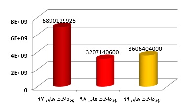 نمودار ۳۲ کل مبلغ مربوط به قراردادهای مرکز فاوا طی سال های ۹۷ الی ۹۹ نشان می دهد. مرکز فاوا با توجه به سیاست های کلان دانشگاه سعی نموده است تا از بار مالی قراردادها بکاهد. تعداد شرکت های طرف قرارداد طی سال های ۹۷ الی ۹۹ به ترتیب ۹، ۹ و ۶ شرکت بوده است.