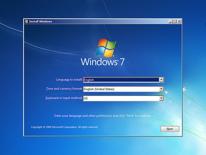 3- تنظیم زبان و زدن کلید NEXTدر این مرحله می توانید زبان مورد نظر را انتخاب کنید در صورتی که زبان کشور خود را انتخاب نکردید نگران نباشید بعد از نصب ویندوز می توانید تنظیمات آن را انجام دهید.